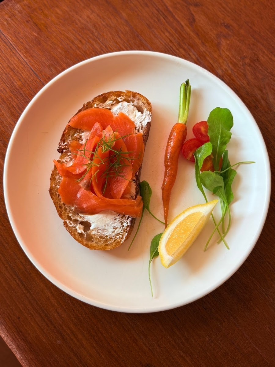As you step into the cafe, the first thing that greets you is the inviting aroma of freshly baked sourdough, a standout menu item that has garnered rave reviews from visitors. Imagine breaking bread that is golden and crisp on the outside, yet soft and warm on the inside — it’s a sensory experience that sets the stage for the rest of your meal. The atmosphere is calming, enhanced by the charming decor and the soothing presence of the owner’s two adorable dogs, who add a touch of warmth to the overall experience.